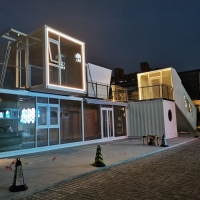 定制化12米长2层创意落地中空玻璃集装箱咖啡吧酒吧私人会所