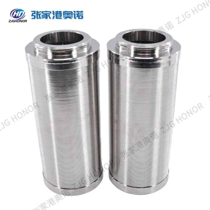 了解决国内筛管圆度不好和间隙不均匀问题,斥资从德国购进世界上的筛管焊接设备,其焊接的绕丝筛管(楔形滤芯)具有**的圆度和的间隙,小间隙为15微米,负公差为5微米,所焊接的绕丝筛管小直径为25.4mm 为1200mm, 长度为2300mm,原材料统一为进口丝材,以保证我们的产品不论从原材料,还是丝材成型工艺,以及焊接后产品的质量都能达到国际标准,并且完全可以代替进口,而且货期相比国外有很大的优势 张家港奥诺金属制品有限公司生产制造的楔形滤芯是由“V”形即楔形钢丝(表层丝)和支撑丝组成的。滤芯的光滑面为过滤表面,缝隙为条形(喇叭口),属于表层过滤形式。作为多种形式的自动过滤器的过滤元件被广泛地应用于硅藻土过滤机深层过滤。由于采用特殊的楔形丝结构,与烧结丝滤芯以及其他滤芯相比,其具有不易堵塞,易反冲洗、使用寿命长的优势,是其他滤芯的**替代品。