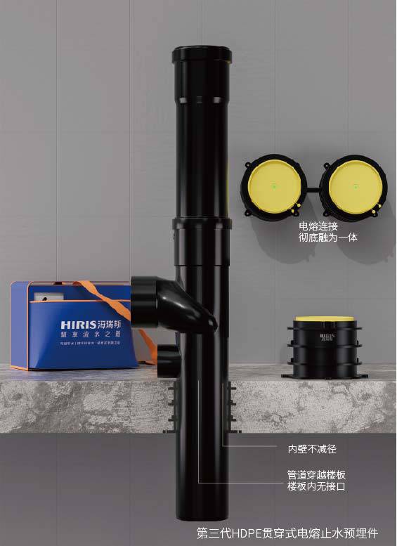 由海瑞斯品牌研发的第三代HDPE贯穿式电熔止水预埋件,从材质、连接方式到内部结构上进行彻底变革,从根本上消除管根渗漏隐患。