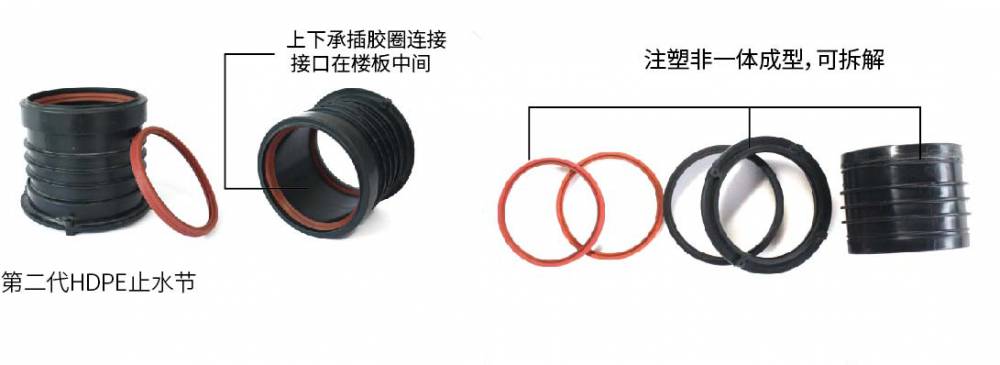 为了改善传统UPVC止水节材料的弊端,HDPE止水节在材质上进行了全面创新,从一定程度上解决了因UPVC材质的刚性及不耐老化所带来的渗漏问题。但因这种止水节核心连接方式依然采取传统UPVC承插连接方式,还是无法避免漏水的发生。
